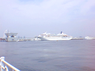 さて、氷川丸の向かい岸にあたる大桟橋の方に目を向けると豪華客船が停泊中。