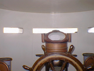 写真は司令塔。艦長や司令長官が戦闘中に指揮を執るところで、分厚い鉄の塊の中にありますが、日本海戦では東郷提督が露天艦橋から動かなかったので、幕僚の一部が(司令部の全滅を防ぐために)入っていただけで、艦長や主要な参謀は露天艦橋にいました。